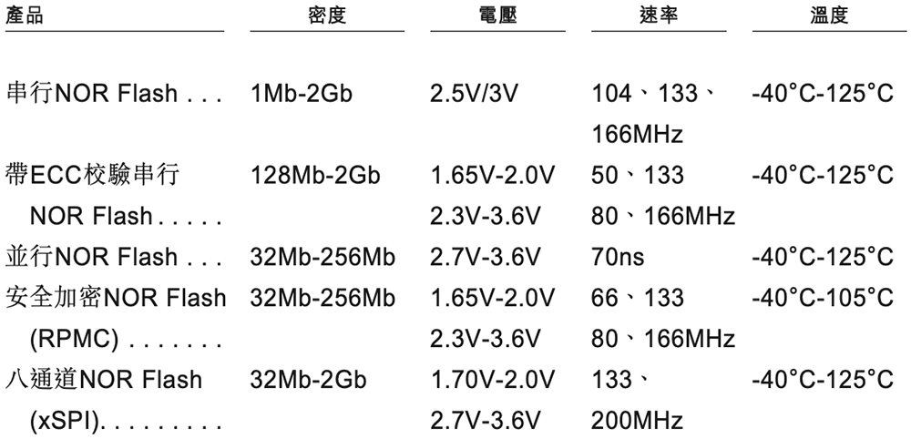 ▲北京君正NOR Flash产品的主要规格