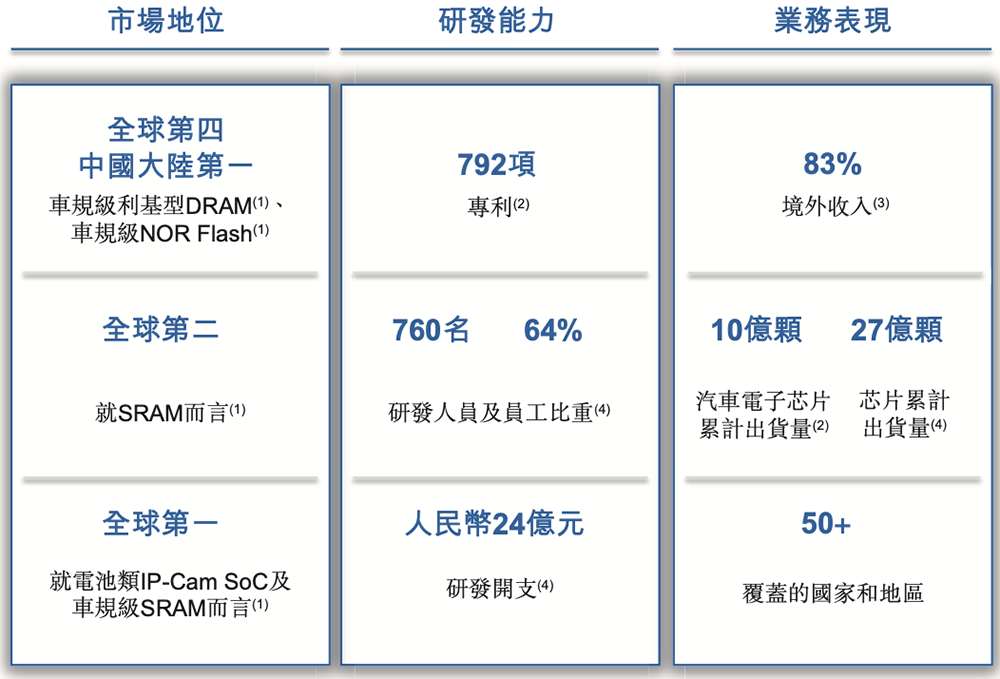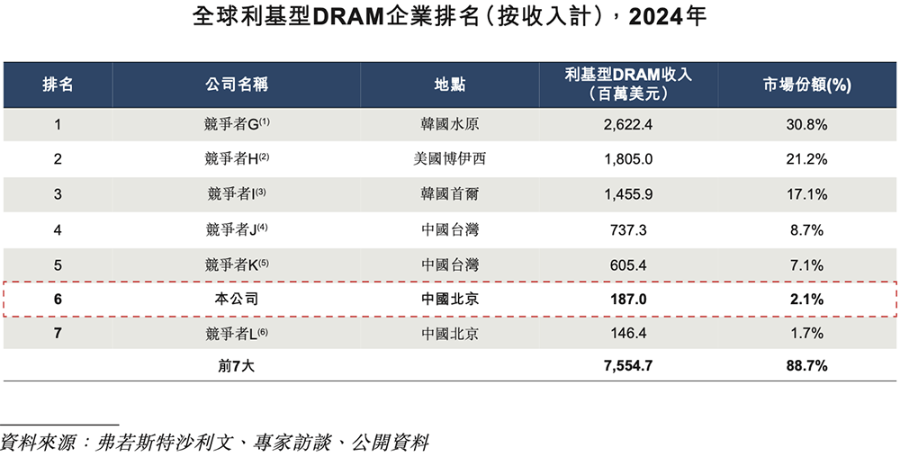 - 利基型DRAM:排名全球第六、国内第一,并在全球车规级利基型DRAM供应商中排名第四;