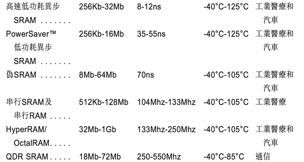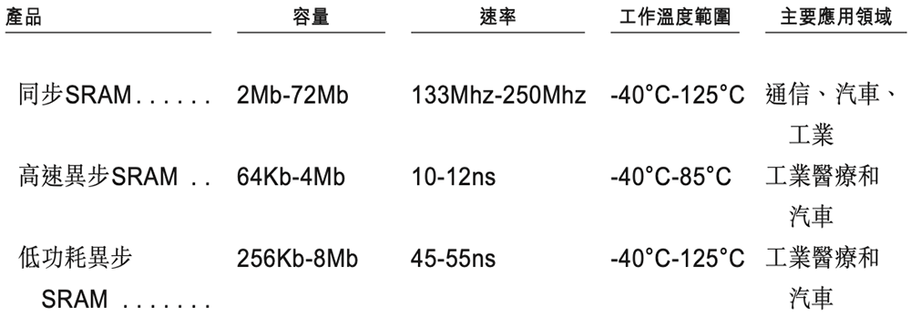 其存储芯片产品线包括DRAM、SRAM、NOR Flash及NAND Flash,旨在满足汽车电子及工业医疗领域的严苛需求。
