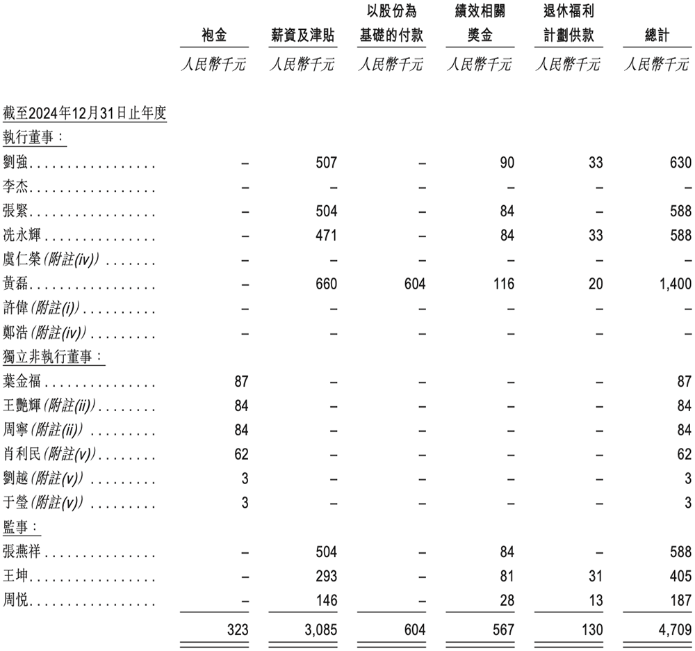 2024年,北京君正董事及监事酬金如下:
