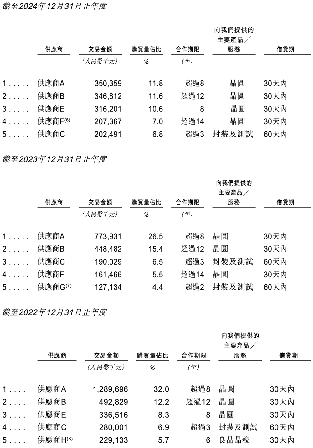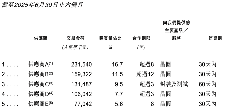 其五大客户及五大供应商之间无任何重叠。