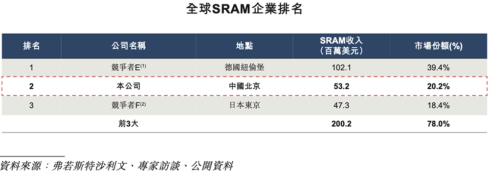 - SRAM:排名全球第二、国内第一,并在全球车规级SRAM供应商中排名第一;