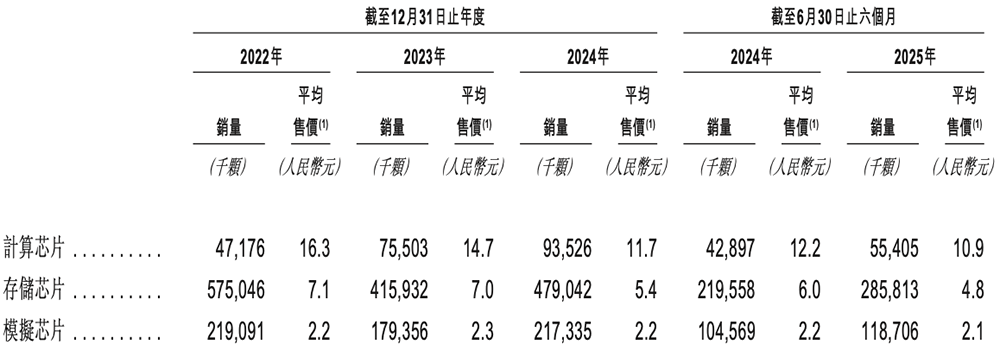 2025年上半年,北京君正的计算芯片、存储芯片、模拟芯片的销量分别达到0.55亿颗、2.86亿颗、1.19亿颗。