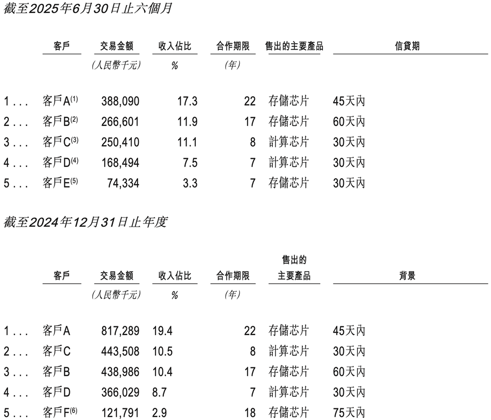 2022年、2023年、2024年、2025年1-6月,其向五大客户的销售额分别占总销售额的50.6%、54.5%、51.9%、51.1%。