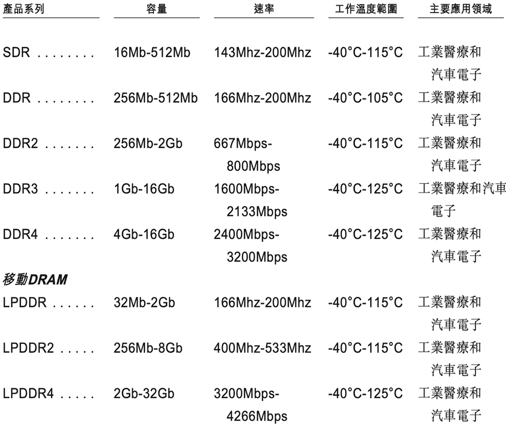 ▲北京君正主要DRAM产品