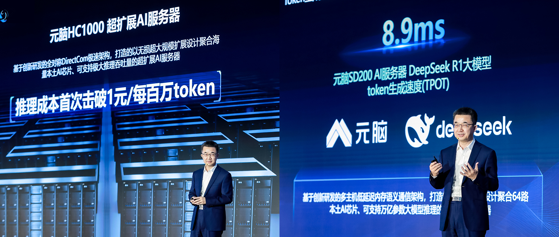 其次是元脑HC1000超扩展AI服务器,推理成本首次击破1元/每百万Token。