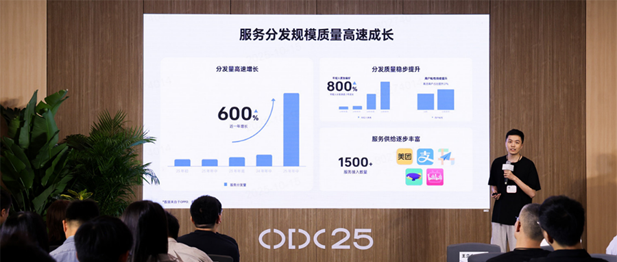 截至2025年6月,OPPO智慧服务覆盖出行、生活、娱乐等多元领域,服务分发量同比增长600%+;分发质量稳步提升,主场景服务分发效率同比提升28%+;分发场景年轻用户渗透同比提升800%+,更有助于开发者触达年轻受众。