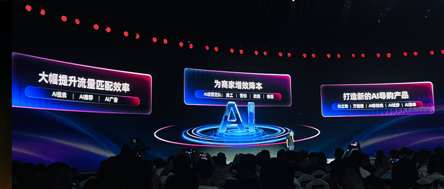 AI搜索让用户更自由地表达,复杂语义下搜索相关性提高20%,这是一个惊人的量级提升;AI推荐给消费者带来更惊喜体验,推荐信息流点击量提高了10%;AI广告则给商家更精准的触达能力,广告投放ROI提高超12%;AI商品库提供更精准的商品理解力,超20亿商品链接借助AI进行了重新理解和组织。