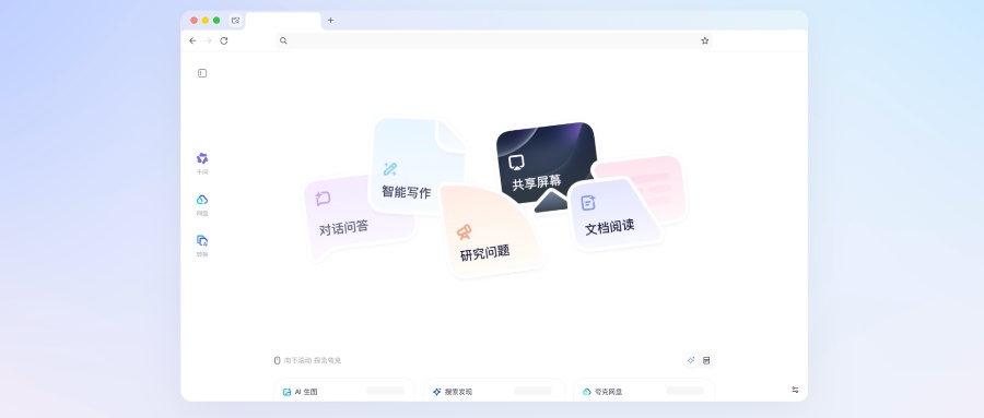 升级后的夸克浏览器能够无需切换应用或标签页,随时在浏览器或者桌面唤起千问,可以“边浏览边对话、边看边总结、即问即答”。