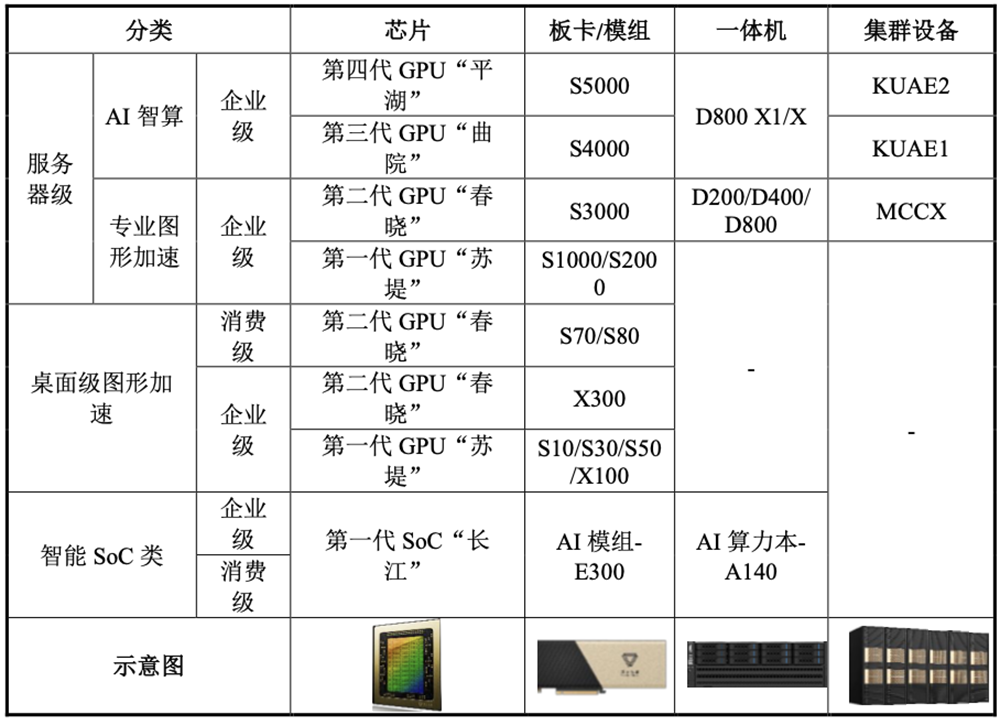 此前,湖南军工GPU龙头景嘉微于2016年3月在深交所创业板上市。另一家国产GPU龙头海光信息于2022年8月在上交所科创板上市,彼时其主营业务是CPU。而摩尔线程的主营业务均围绕其全功能GPU展开。