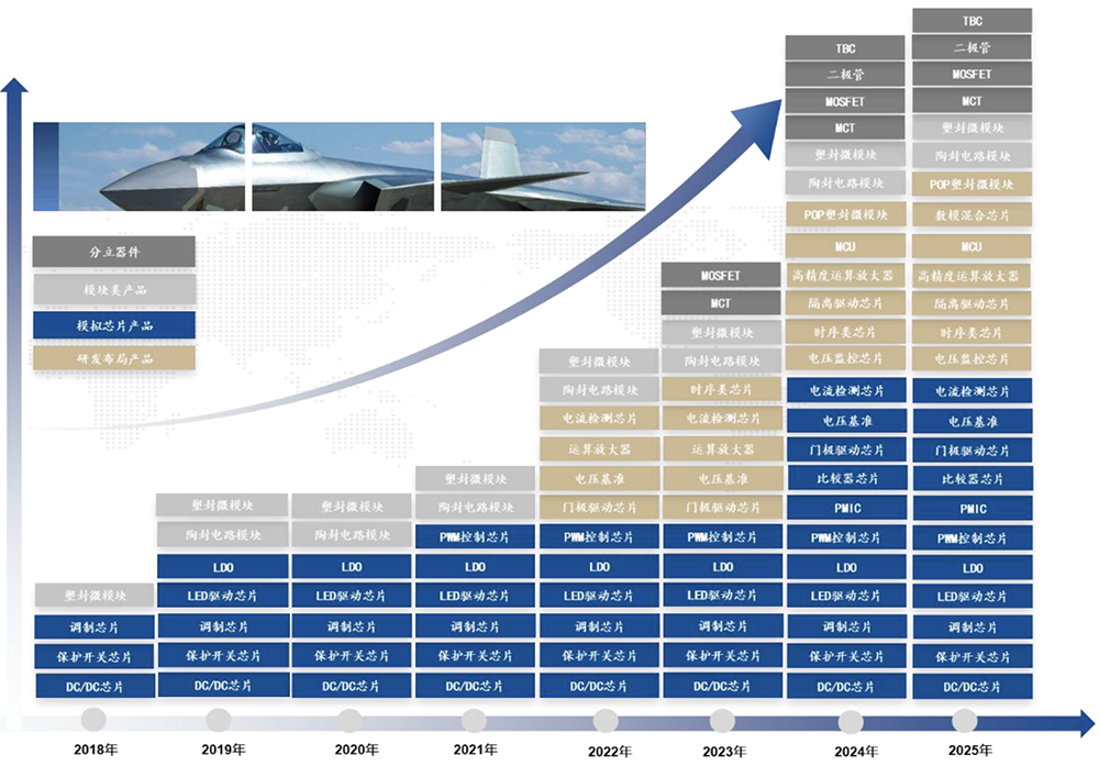 二、产品涉及电源管理芯片、微模块、信号链芯片、分立器件