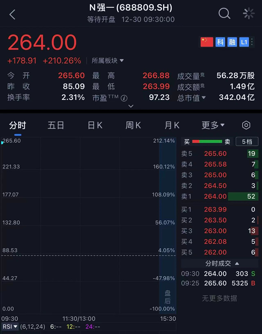 其开盘价为265.60元/股,大涨212.14%,总市值为344亿元。