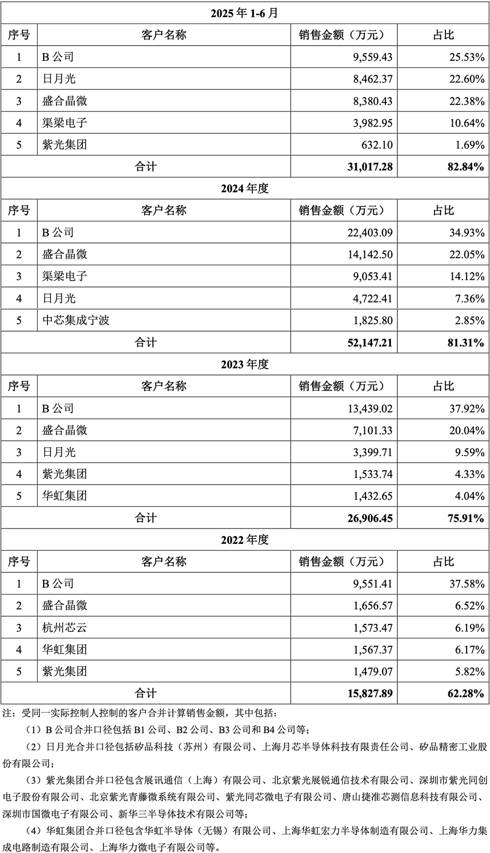 其中,强一股份来自于B公司及已知为其芯片提供测试服务的收入占营收的比例分别为50.29%、67.47%、81.84%、82.83%,对B公司存在重大依赖。