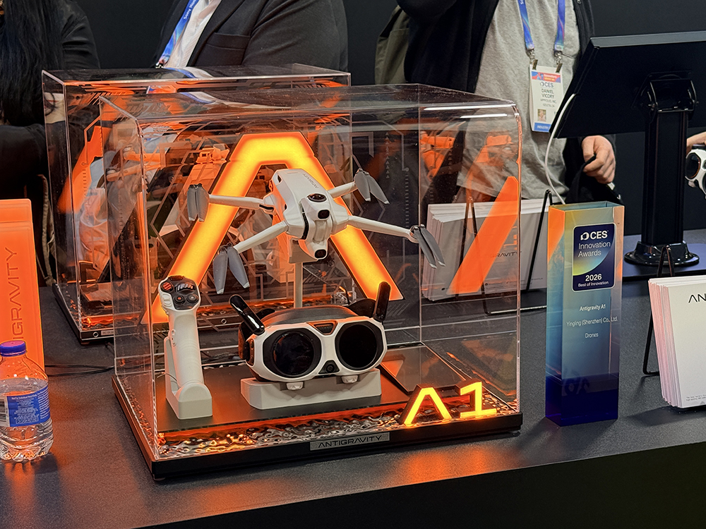 深圳公司影石Insta360旗下品牌影翎Antigravity A1全景无人机亮相,它是全球首款360°全景超高清无人机,荣获CES无人机类最佳创意奖。