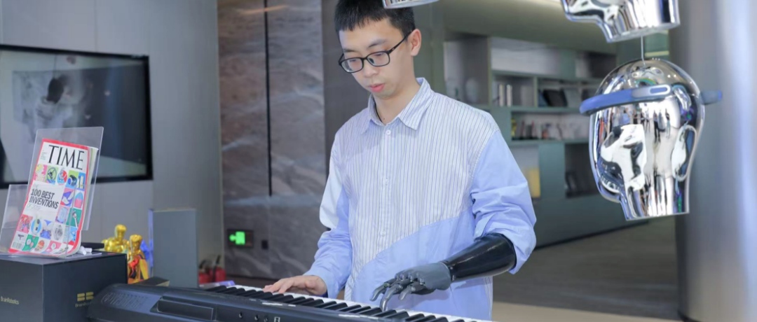 强脑科技核心产品为智能仿生手,基于其自主研发的非侵入式脑机接口技术,通过脑电和肌电信号控制,实现手指的独立运动和精细操作。比如,一位使用者在没有进行开颅手术、没有植入任何芯片的前提下,穿戴仿生手,依靠动脑就能完成钢琴演奏。