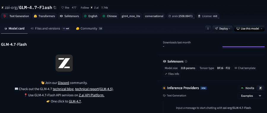 https://huggingface.co/zai-org/GLM-4.7-Flash