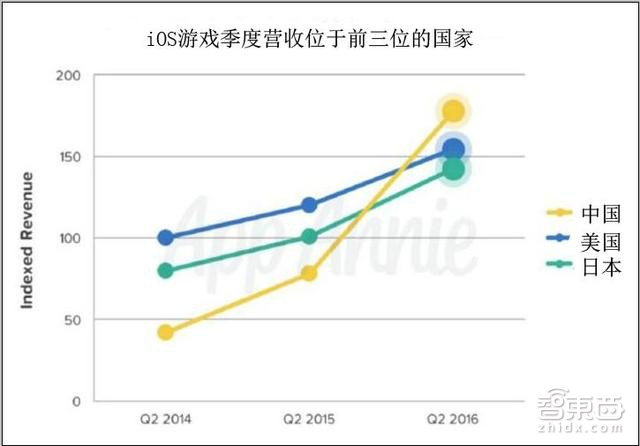 市场研究公司App Annie称,在今年第二季度,中国iOS游戏营收达到了新的里程碑,超过美国成为了全世界iOS游戏营收最高的国家。