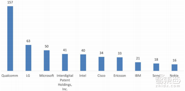其中,排名前二的高通和英特尔,专利储备量分别为724件和688件,总体占比接近Top20的专利总量的三分之一。