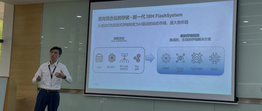 IBM中国区存储业务总经理金鑫提到,针对企业面临的存储挑战,IBM今年第一季度发布了新一代Flash产品线,该产品线实现从传统被动反应式存储升级为AI驱动的动态存储。在新一代闪存系统FlashSystem产品中,IBM引入了智能体FlashSystem.ai、以及第5代FCM(FlashCore Module)。
