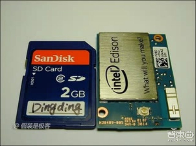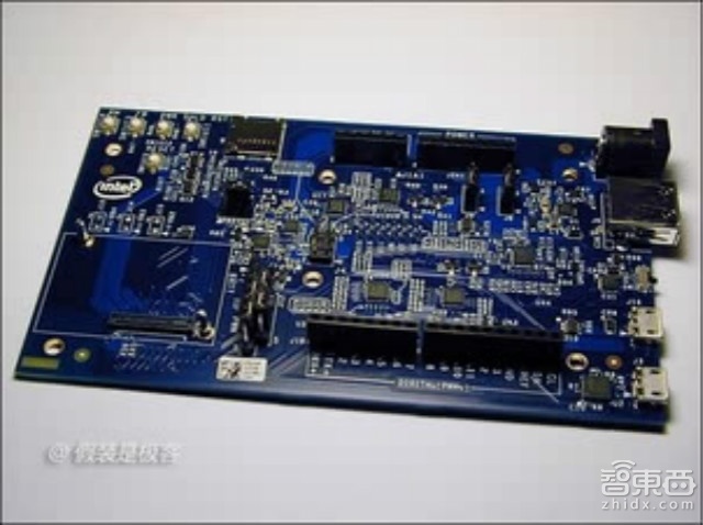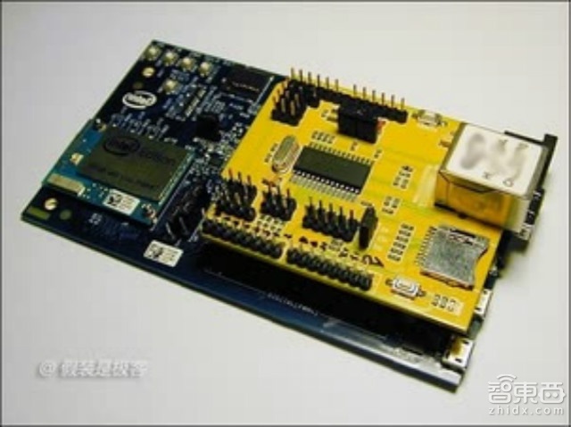 (开发者手里的Arduino扩展模块可以直接在这款Edison开发板上使用)