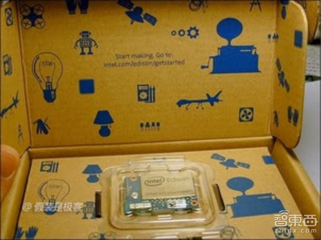 打开外包装之后,我们看到的是Edison的模块,同时,在包装的纸壳上印有Edison入门指南的官方网址。
