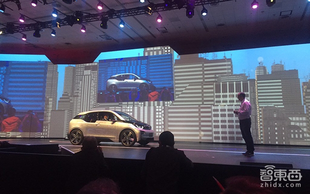 最后演示的一个实感技术的高级案例是宝马i3纯电动车的避障功能,一位宝马高管开着具备 360度避障功能的宝马i3上台。