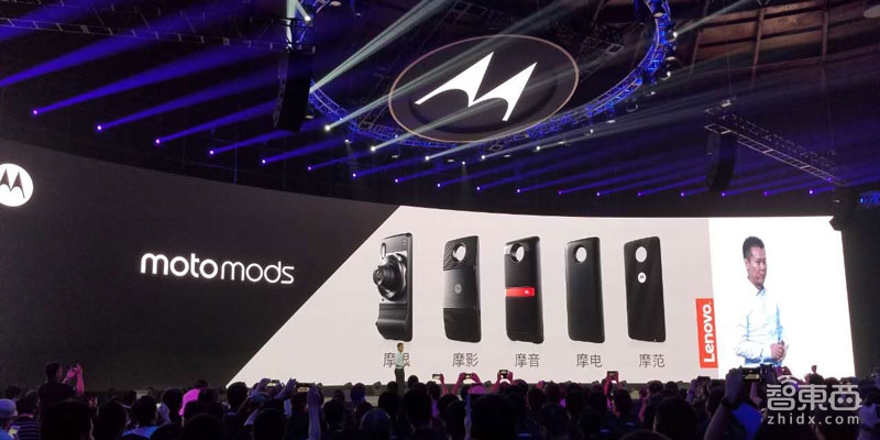 智东西9月6日消息,联想今天在北京正式推出MOTO最新系列模块化手机产品MOTO Z和MOTO Z Play,最大特色是模块化设计。与两款手机产品一同亮相的是5款不同功能的模块化配件,五款模块分别是:模范(后壳)、墨电(电池)、摩音(外接音箱模块)、摩影(投影模块)、摩眼(哈苏10倍变焦相机模块)。