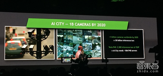 以未来城市中数以十亿计的摄像头为例,黄仁勋表示,这么大规模的摄像头是无法通过人工完成监控与识别工作的,而人工智能则可以很好的解决这个问题,通过深度学习网络,人工智能能够自动完成监控、预警等管理工作。