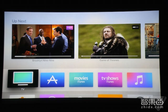 通过“TV”可以在多个流媒体平台间自由切换,并在TV、iPhone、iPad同步使用。能完全接入Siri的语音控制功能,比如选择权利游戏的第三集,可以从所有内容源里面进行搜索。