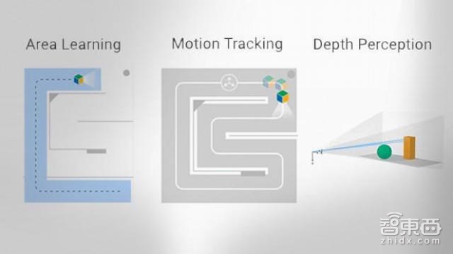 而Project Tango,则是我们下一个话题——谷歌Project Tango(2016年改名为Tango)是一套独特的适配Android设备的摄像机系统,拥有3D深度传感器及配套软件,可以为硬件设备带来空间感知功能——简单来说,可以让移动硬件“看见”周围环境,像人一样知道哪里是墙、哪里是地。其三大核心技术分别为:运动追踪(Motion Tracking),深度感知(Depth Perception)和区块学习(Area Learning),分别让设备能够理解自己的位置和方向、检查周边环境的形状、以及绘图记住周边环境。以AR家装类App为例,只有采集了深度信息,手机才能知道一个3米的沙发模型无法放入2米的空隙中。