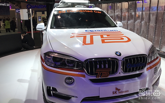 如果你来到SKtelecom的展台,会看到一辆桔色涂装的宝马X5,头顶上顶着一系列大小花盆,猛地一看跟一辆自动驾驶测试车一样。
