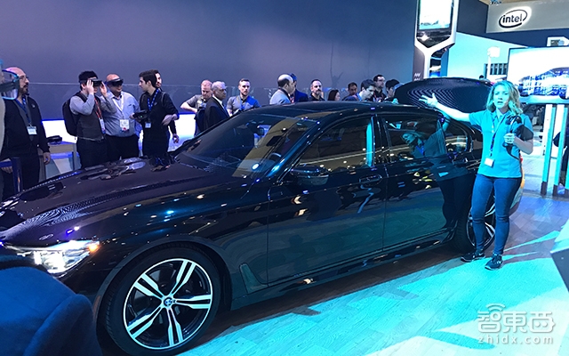 虽然英特尔的展台面积很大,并且展出了无人机、IOT、移动芯片等多项科技,但是其面积最大且观众最多的地方还是自动驾驶展示区,而英特尔也非常实在的将一辆宝马740自动驾驶测试车直接拉到了现场。