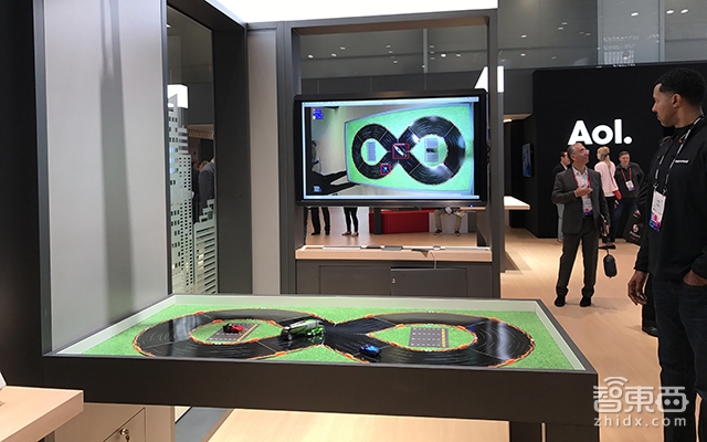 诺基亚旗下的贝尔实验室在展馆内搭建了一个非常大的虚拟道路,道路中间跑着一台大号遥控玩具车。与一般玩具车不同的是,这辆车没有遥控器。,而是有一名工作人员在另外一个房间内通过一套模拟器,基于诺基亚搭建的小范围5G网络进行远程控制。