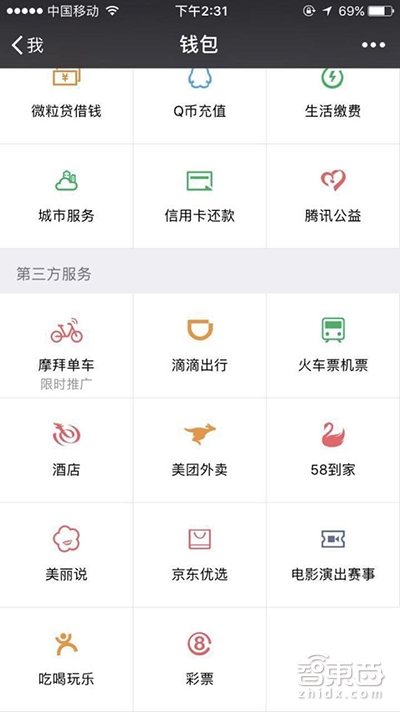 2、通过微信钱包第三方服务“九宫格”进入摩拜单车小程序;