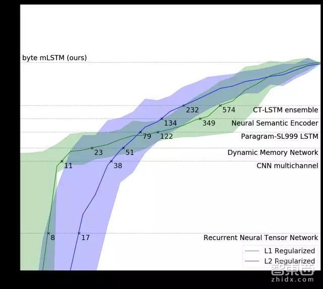 1.jpg使用这种表征的一个线性模型在一个小却得到了广泛研究的数据集(Stanford Sentiment Treebank)上实现了当前最佳的情感分析准确度——91.8%,而之前的最高水平是 90.2%;而且该模型可以仅使用少 30-100 倍的有标注样本就能达到比肩之前的监督式系统的表现。我们的表征中也包含了一个明显的「情感神经元(sentiment neuron)」,其囊括了几乎所有的情感信号