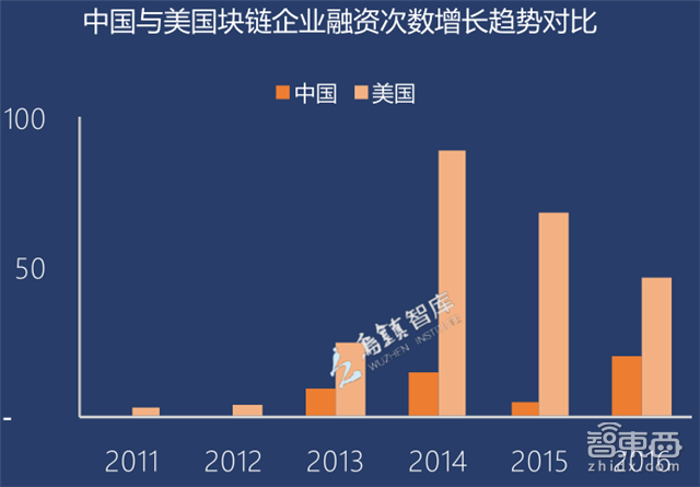 在区块链产业融资领域,中国无论是在融资次数和融资金额上都跟美国有很大的差距。2016年中国在区块链融资领域缩小了跟美国之间的差距。