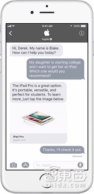 在昨天凌晨的WWDC大会上,苹果宣布了最新的iOS 11系统更新。在苹果开发者网站,列出了在大会上未被介绍的iOS 11消息应用新增功能“业务聊天(Business Chat)”,可以允许企业、商铺直接向客户开通私聊,以用于客服、咨询等目的。用户可以直接在Safari、地图、Spotlight和Siri上看到可用商户的消息聊天对话选项。