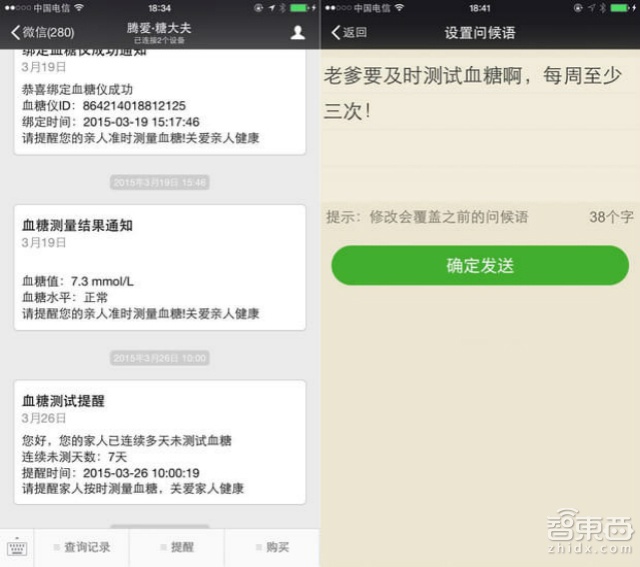 血糖仪实现了短信推送结果并不新鲜,但与微信联动其实不多见,而微信推送信息的好处很明显:内容很丰富,可以进行更多复杂信息推送。