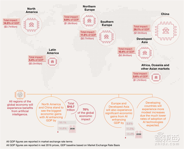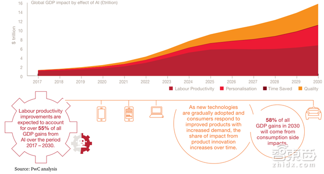 智东西认为,人工智能技术本质上是数字化浪潮的全面推广,即对更广泛信息的更深度的应用,关键词在于精准、高效和全局。对于制造业,其生产力的提高毋庸置疑,城市交通体系,包括物流等也会因此高效协同运作;医疗、金融等专业领域也会更为便捷和精确;面向消费市场的零售领域也将更为灵活,缩短反馈周期,明确客户定位和需求。因此,对于整体经济而言,AI是将碎片化市场衔接的更为充分的工具,资源利用率更高,需求挖掘的更全面深刻,有利于各大经济体的GDP增长。