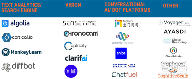 强力的资本介入使得AI成为创业的关键领域,对此,CB Insights整理出了百强AI创企,覆盖聊天程序、视觉、汽车、机器人、网络安全、商务智能与分析、广告与销售与客户管理、核心/前沿技术、医疗、文本分析、物联网、消费、金融与保险等领域。