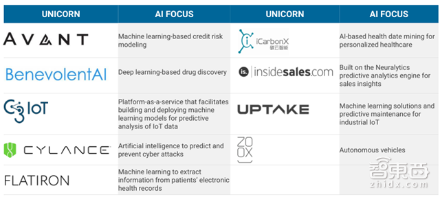 *采用人工智能算法的独角兽公司列表