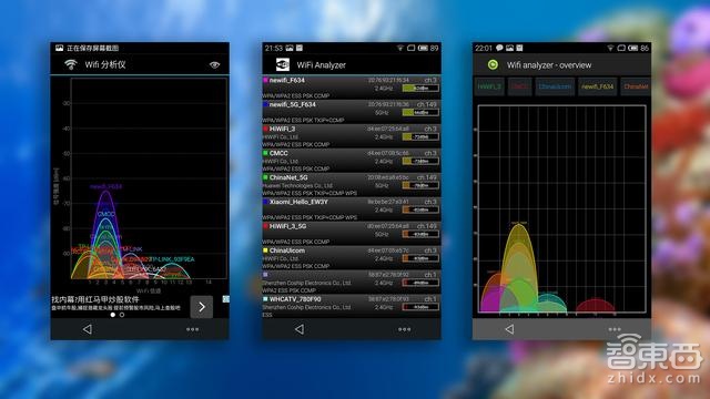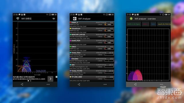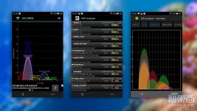 极路由3 默认无线发射功率为20dBm,采用3根外置的5dBi高增益天线,5dBi高增益天线可有效将无线信号进行放大,并提升信号的接收能力,令无线信号更强劲,覆盖范围更广。接下来我们看看极路由3 WiFi信号到底如何: