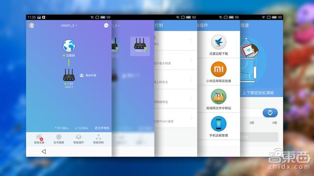 极路由之所以被称为智能路由器,很大一部分原因是因为拥有APP插件和移动端管理。前期极路由就是靠各种各样的APP插件成为卖点,就如智能手机一样你可以为路由器安装不同的应用。