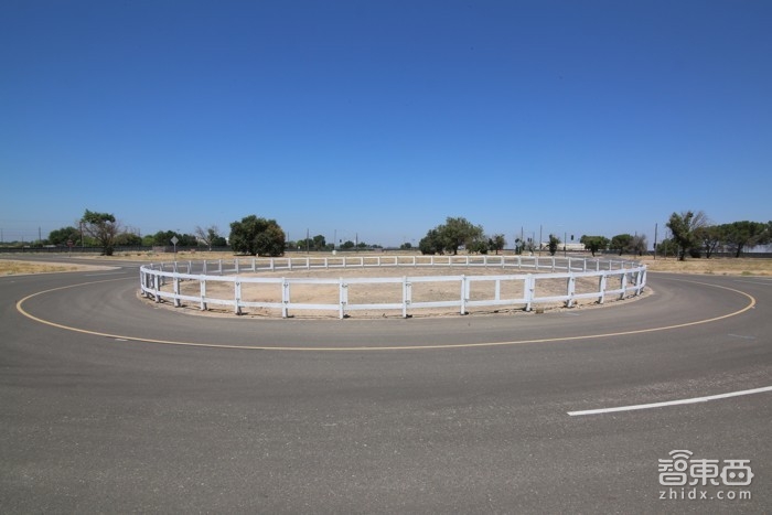 我们来到一个新地方,这里有一条迂回两车道公路。中间是一个圆,围了白色栅栏。比列加斯说:“我们在德州Asutin的多车道迂回公路上行驶之后建了这条迂回路。最初只有单车道迂回道,我们当时认为:‘行了,这样就行了。’到了多车道迂回路上,我们才发现完全是另一回事。于是建了这条迂回路。”