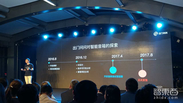 接着,他谈到问问音箱在去年8月份开始进行市场调研,并进行项目前期准备;去年12月份音箱项目立项,开始进行ID设计、技术可行性分析;第一批样品今年4月份亮相,并招募测试馆进行测试,经过4个月的产品打磨,在今年8月份正式发售。
