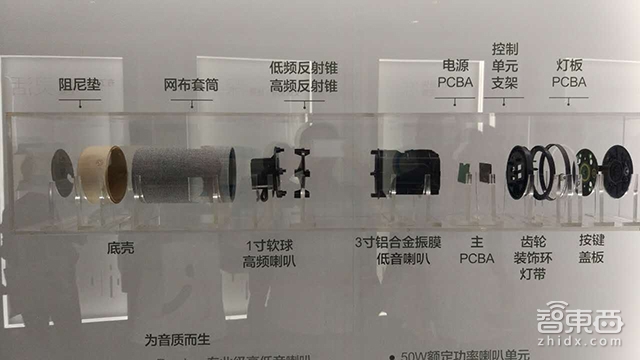 从产品和李志飞的对话中,我们也寻找到了具体的答案。首先,在音质方面,问问音箱采用一个1寸高频扬声器、一个3寸低频扬声器和32平方厘米的被动辐射器,音腔更大。相比智东西此前拆解的一系列智能音箱,它的发音单元配置是不错的。
