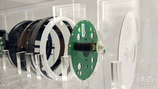 在问问音箱的展示区,我们也看到了音箱的拆解图。其中我们发现在硬件上一个关键的部分麦克风阵列上, 出门问问采用的是2麦克风阵列。