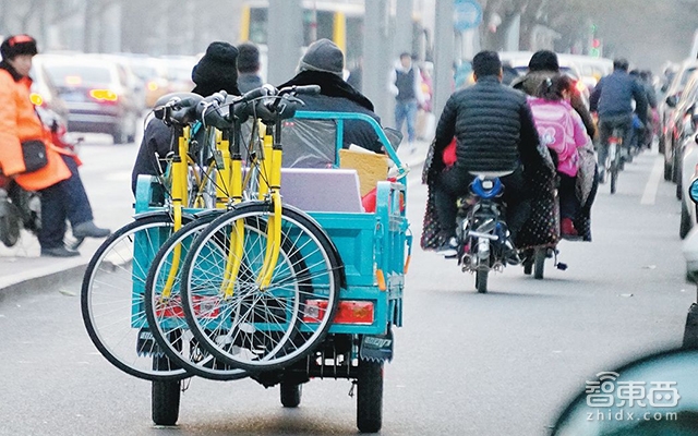 (共享单车占据了人行道)