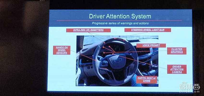 另外,为了防止驾驶员疲劳驾驶或是滥用SuperCruise而遇险,通用在CT6方向盘上方安置了一个带红外发射功能的摄像头,可以检测驾驶员的疲劳状态,发现情况不对就会发出蜂鸣提醒驾驶员;另外,方向盘上还有一个电容感应器,在不应该使用自动驾驶的情况下,驾驶员双手放开方向盘也会触发系统提醒。
