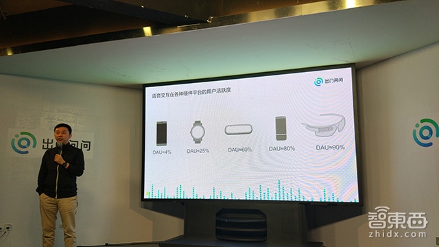 如何选择语音交互的场景以及产品呢?用户在不同设备中语音交互的日活跃量给了李志飞很大启发。如手机中语音使用的日活小于4%,智能手表接近25%,而Google Glass的日活竟然在90%。